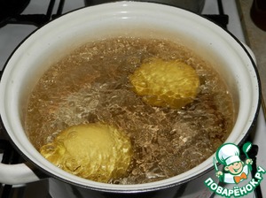 Сначала надо замочить изюм для размягчения. Далее в небольшой кастрюле довести воду до кипения. Положить лимоны и варить 2 минуты. Отключить огонь и оставить лимоны в воде на 5 минут. Это нужно для того, чтобы корка стала не горькой. А ещё, чтобы корочка легче измельчалась в блендере. Через 5 минут вынуть лимоны и немного остудить, но не до конца, чтобы они оставались тёплые.