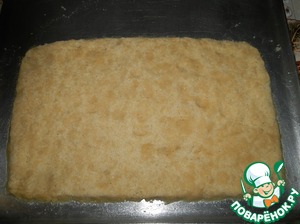 Смазать противень растительным маслом и выложить на него оставшееся тесто. Разровнять, прижать и придать ему прямоугольную форму.