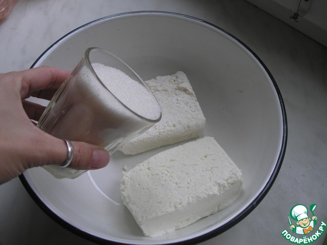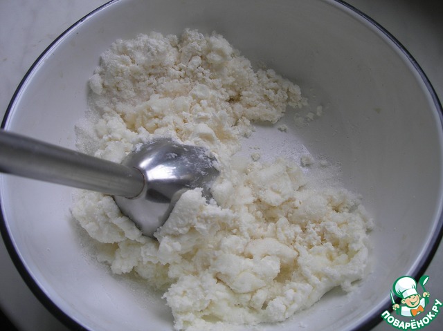 Добавляю взбитые яйца к творожной массе и перемешиваю.
