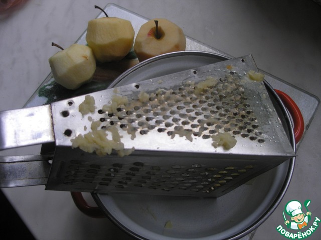 И вот появляются секретные агенты - яблоки! Я их очищаю от кожуры и натираю на мелкой тёрке.