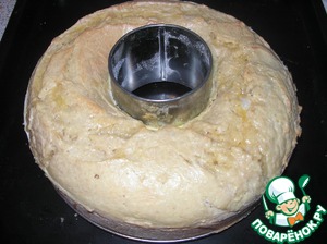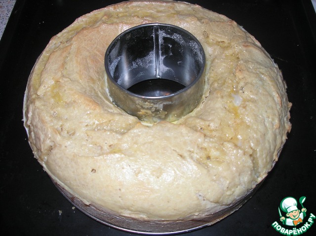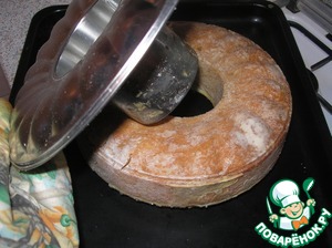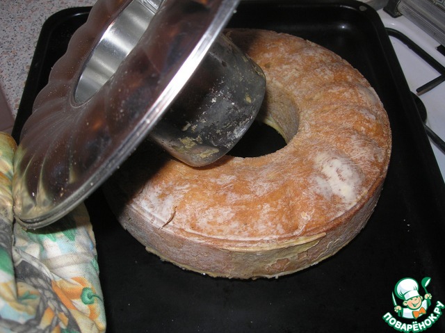 И переворачиваю его на истинное основание. Как видно, верх уже подрумянился. Ещё примерно через 1 час кекс готов!