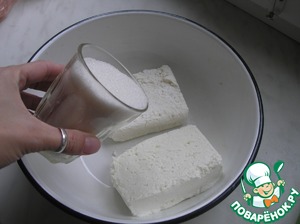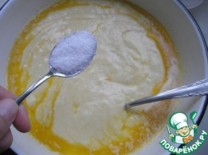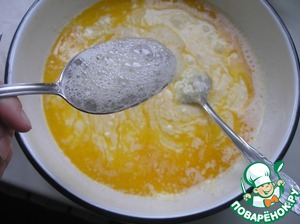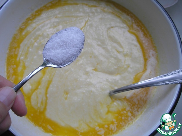Далее понадобится 1 ч. л. соды, которую я погасила лимонным соком. Добавляем в творожное тесто.