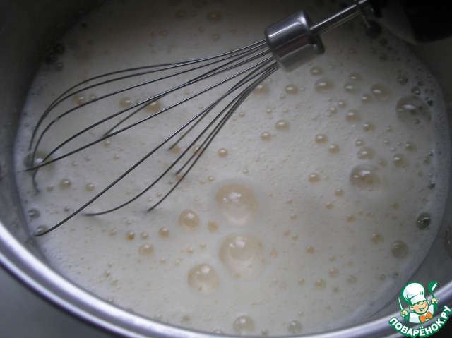 Пока маргарин остывает, взбиваю яйца в крепкую пену.