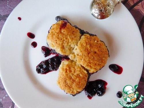 Чернику (я не стала предварительно размораживать), смешать с лимонным соком, лимонной цедрой. Добавить 1,5 ст. л. сахара и 1 ст. л. муки. Перемешать и переложить в форму, в которой будете готовить.