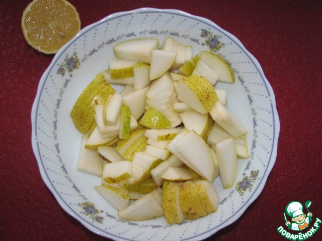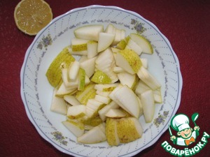 Груши нарезать небольшими кусочками и полить соком из половины лимона. -
