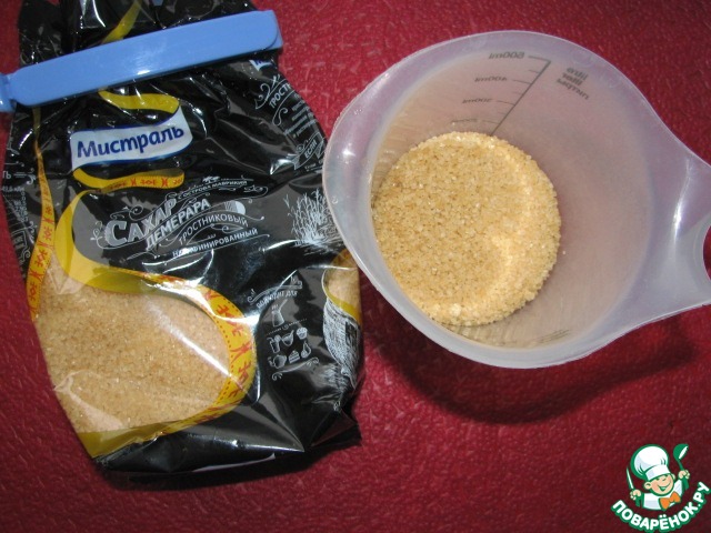 Отмерить необходимое количество сахара. Для карамельного вкуса я использую тростниковый сахар "Демерара" от ТМ "Мистраль".