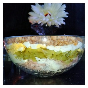 Оленька, прекрасный слоёный салат. Верхний слой соответствует названию. Здорово передала смысл и и суть мужских слёз. Спасибо за рецепт. Очень красивые фото. Молодец!