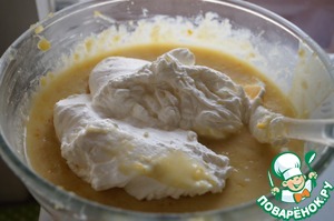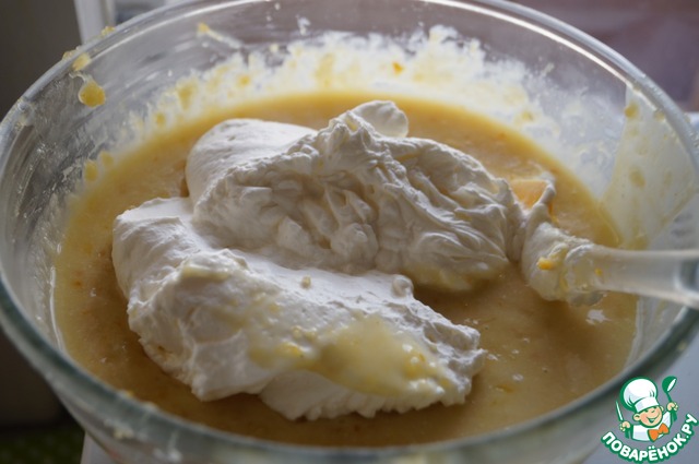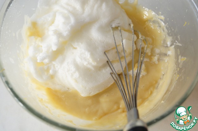 • Взбить в отдельной чаше яичные белки и выложить в остывшую лимонную массу. Аккуратно перемешать до полного соединения ингредиентов.
