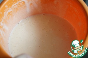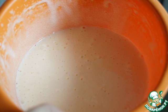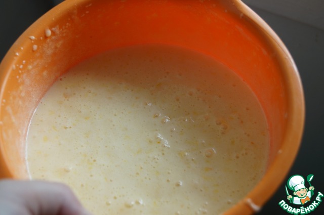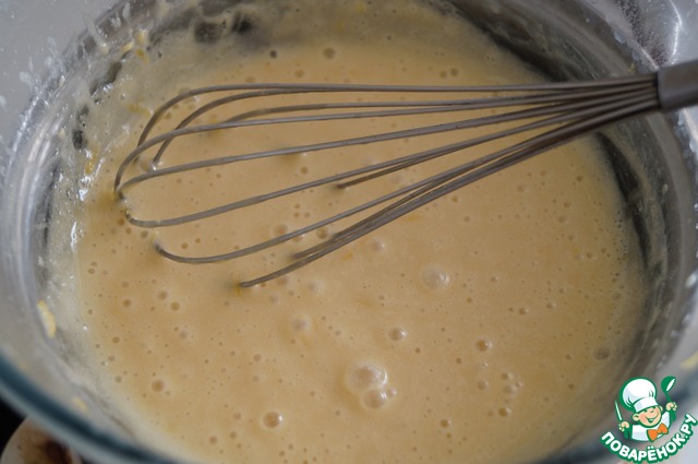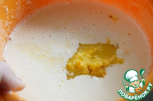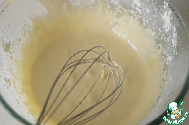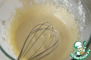 • Влить растопленное сливочное масло и хорошо взбить.