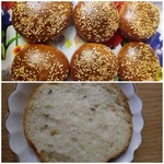 Развести мед (или пекмез) тёплой водой, смазать лепёшки и посыпать кунжутом.