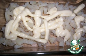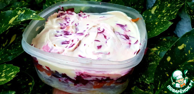 Вариант приготовления "селeдки под шубой", "изюминка" рецепта в использовании двух разных майонезов.