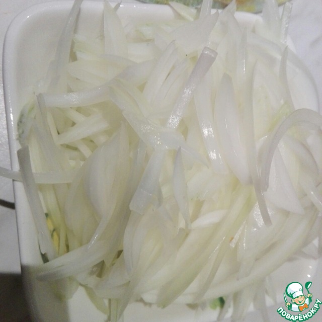 - Лук репчатый (1/4 на порцию) — 1 шт