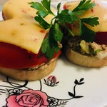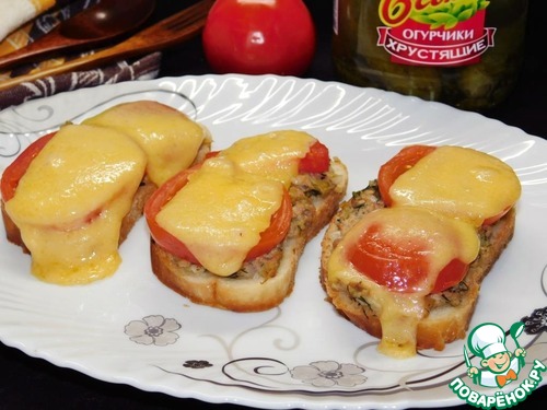 Раскладываем кружки помидоров и по кусочку сыра. Ставим в духовку при 190С минут на 15.