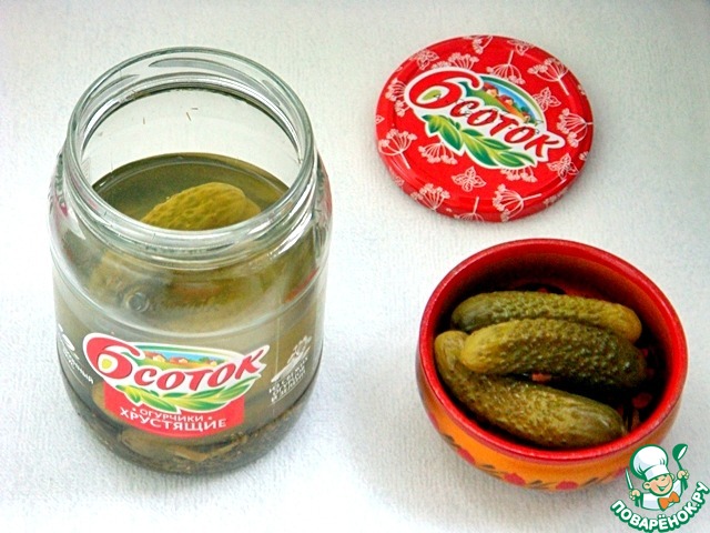 - Огурец маринованный (Огурчики хрустящие ТМ "6 соток") — 2 шт