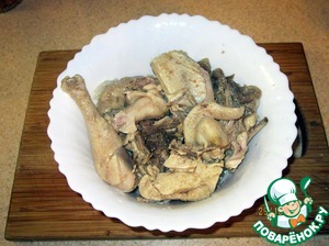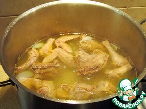 Прошло пять часов, вынимаем мясо из бульона.