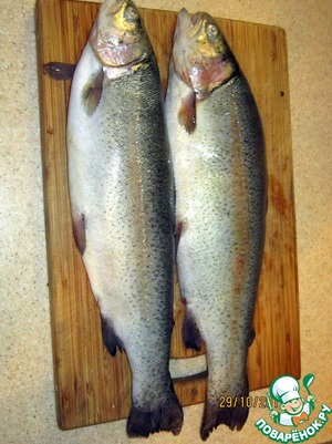Ошкуриваем две форели общим весом 1,5 кг.