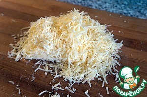 Сверху обильно и равномерно залить сырно-майонезно-чесн очной смесью.