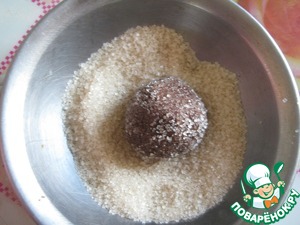 Берём небольшое количество теста (примерно 25 -30 гр), скатываем шарик, делаем лепёшку, на середину кладём маршмеллоу, защипываем и скатываем шарик. Тесто немного липкое, поэтому периодически смачиваем водой руки.