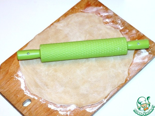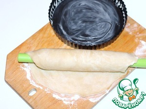 5. При помощи скалки переносим пласт теста в смазанную маслом формочку для выпечки (ф 24 см).