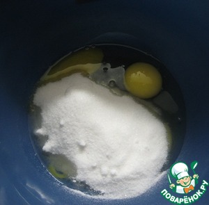 Яйца взбить с сахаром и ванильным сахаром до пышной, светлой массы.