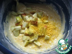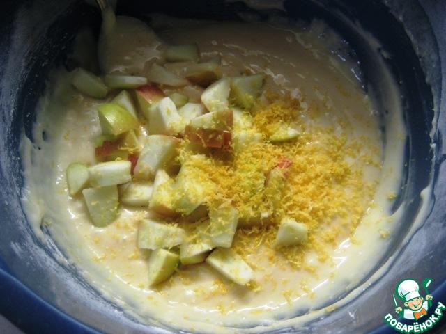 Добавить нарезанное на небольшие кусочки яблоко, цедру с одного лимона. Хорошо перемешать.