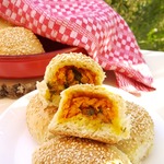 Смазать пирожки молоком, присыпать кунжутом (по желанию)
