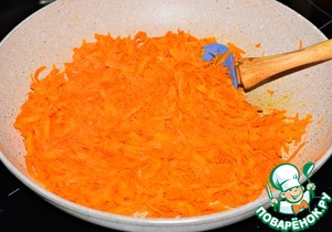 Морковь натереть на крупной терке и обжарить ее в растительном масле до мягкости. Посолить по вкусу, остудить. -