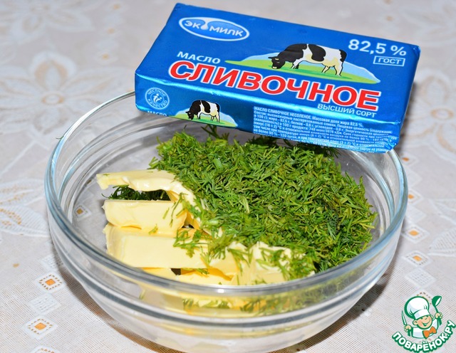 Размягченное сливочное масло смешать с измельченным укропом и поставить в холодильник до тех пор, пока оно не понадобится.