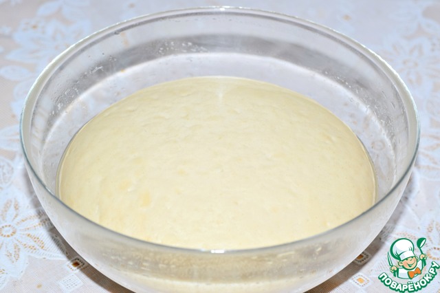 Положить тесто в чашу, смазанную растительным маслом. Затянуть чашу пищевой пленкой и поставить на 35-40 минут для подхода в теплое место.