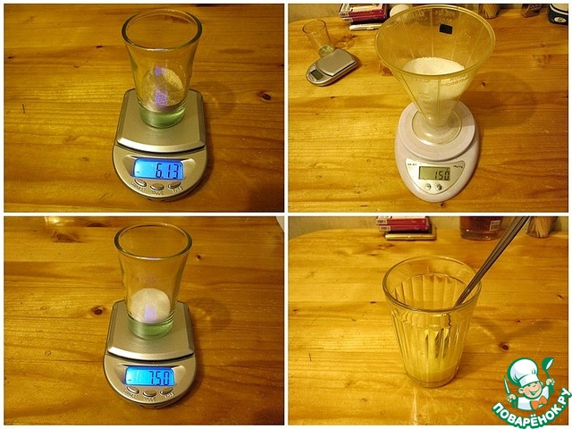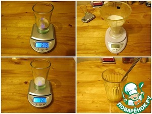 Для начала все отмерим и взвесим. Яйцо тщательно размешать в стакане.
