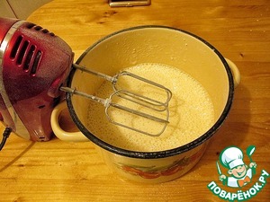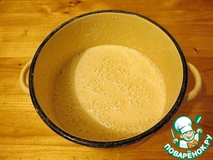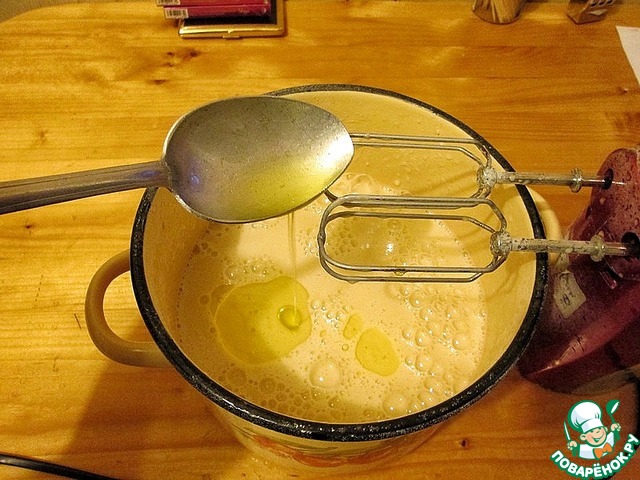 Далее миксером тщательно вымешиваем тесто. Тесто будет жидкое. Так и должно быть.