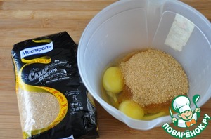 Для приготовления кексов берём коричневый сахар, я использовала "Демерара" от ТМ "Мистраль".