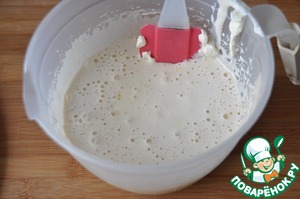 В ёмкость для взбивания кладём яйца, насыпаем сахар и взбиваем миксером на средних оборотах в пену около 2 минут. -
