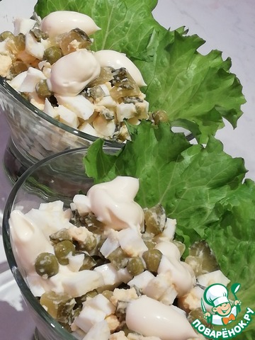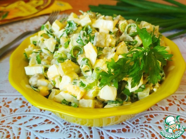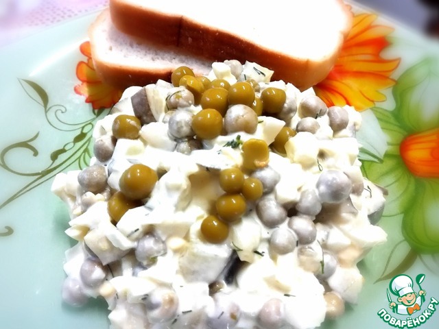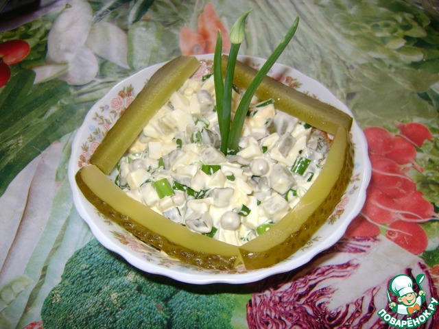 Рецепт «Яичный салат с огурцами и горошком»: