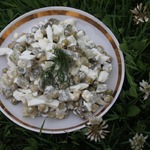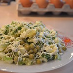 Яичный салат с огурцами и горошком