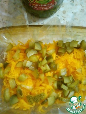 Теперь шаги назад: огурчики, затем 1/3 оставшейся тыквы.
