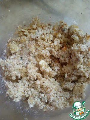 Итак, сначала необходимо подсушить хлеб в духовке и измельчить в крошку. -