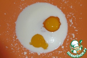 Яйцо и 1 желток взбить с молоком, солью и растопленным сливочным маслом.