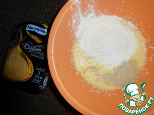 Добавить дрожжи, сахар, муку.