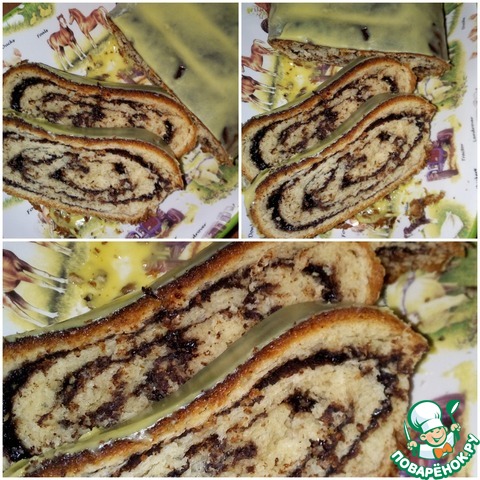 После чего смазываем рулет белком (который остался от теста) и отправляем в разогретую до 180*С духовку минут на 50.