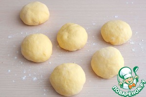 Затем можно приступить к формовке булочек. Тесто разделить на равные кусочки (65-70 гр.), подкатать в шарик.