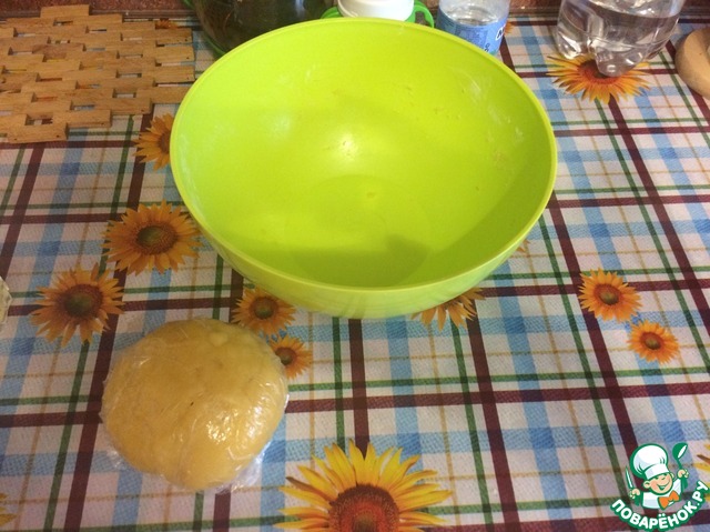 Добавляем сахар и желтки. Замешиваем песочно тесто, оборачиваем его пищевой пленкой и помещаем в холодильник на 30-40 мин