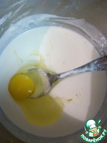 • В отдельной емкости смешать кефир и яйцо.