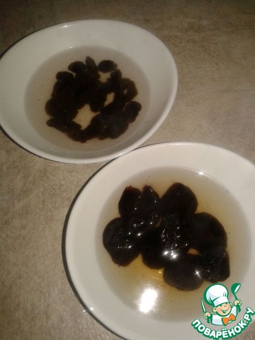 Я брала для своей формочки 8 шт. чернослива и горсть изюма и замочила в кипятке на 5 минут