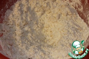 Добавить к нему просеянные муку, разрыхлитель и крахмал. Перемешать.