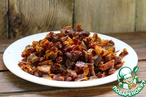 Финики (удалить косточки) разрезать на более мелкие кусочки (я разрезала их на 5-6 частей в зависимости от размера).