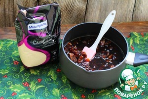 Положить сахар Мистраль тростниковый в кастрюлю и залить горячим свежесваренным кофе. Поставить на средний огонь, размешать до полного растворения сахара (около 2 минут). После этого добавить в кастрюлю финики, снять с огня и отставить кастрюлю на 15 минут.