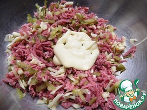 Начинку смешать с майонезом.