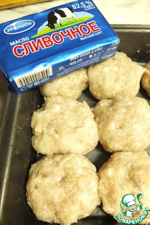 Солим и перчим. Перемешиваем, формируем тефтели и выкладываем их в форму для запекания.