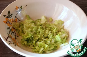 Айсберг вымыть, обсушить, затем нарезать или нарвать на небольшие кусочки.